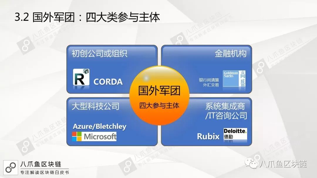 * 咨询公司/系统集成商:发展区块链技术与相关服务,以支持金融机构或其他领域企业客户的区块链技术布建与应用。
