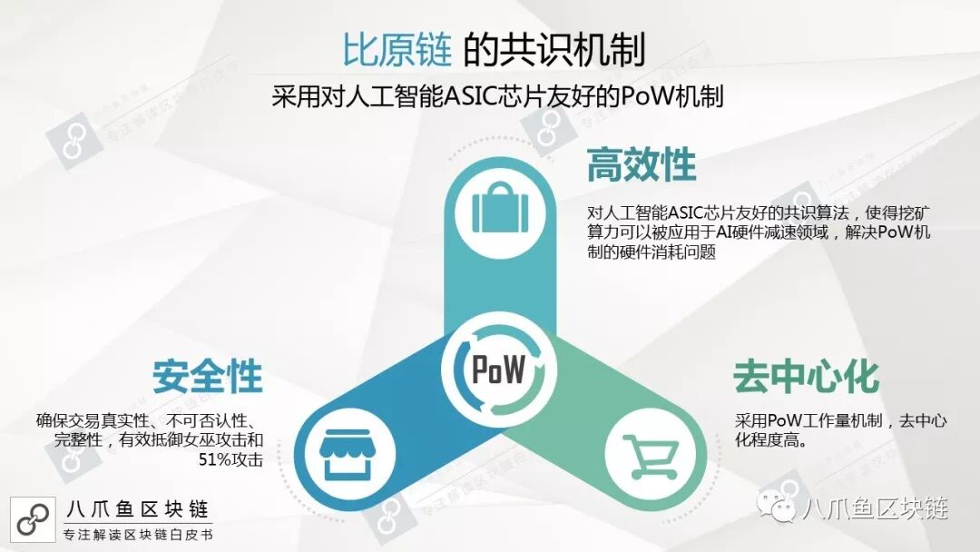 为了保证交易数据的安全性,比原链对“不可能三角”中的安全和去中心化要求较高,所以选择了公有链上较为成熟的 POW 机制、人工智能 ASIC 芯片友好的算法和分区分片机制来保持数据的一致性。