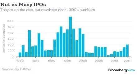 1996年,IPO数量达到了峰值,872起,这个数字有多惊人呢?2016年的IPO数是21起。